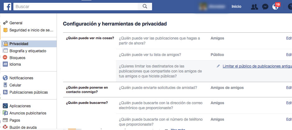 privacidad en facebook